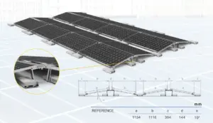 Mit diesem Montagesystem erhalten Sie eine langlebige Lösung, die eine unkomplizierte Installation Ihrer Solaranlage auf Flachdächern oder am Boden ermöglicht. Für die endgültige Auslegung sind die lokalen Normen, die Standortbedingungen sowie die geplante Ballastierung und Statik zu berücksichtigen.