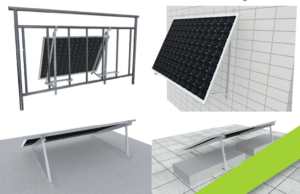 Das GES Montagesystem 4-in-1 ist eine vielseitige Montagelösung für die Befestigung von Solarmodulen an der Fassade, am Balkon, auf Flachdächern sowie auf Freiflächen. Der Neigungswinkel ist je nach Aufbau zwischen 10° und 30° einstellbar. Die Ausführung ist in Silber und Schwarz erhältlich.
