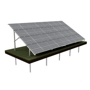 Die horizontale 4×4-Anordnung ermöglicht eine übersichtliche und effiziente Belegung für Freiflächenprojekte. Das System ist für eine gerammte Gründung ausgelegt und unterstützt bei fachgerechter Planung und Installation eine stabile Ausführung.